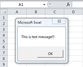 dim txt as String txt = “This is test message!!!” MsgBox txtEnd SubMsgBox([TEXT], [BUTTONS],
